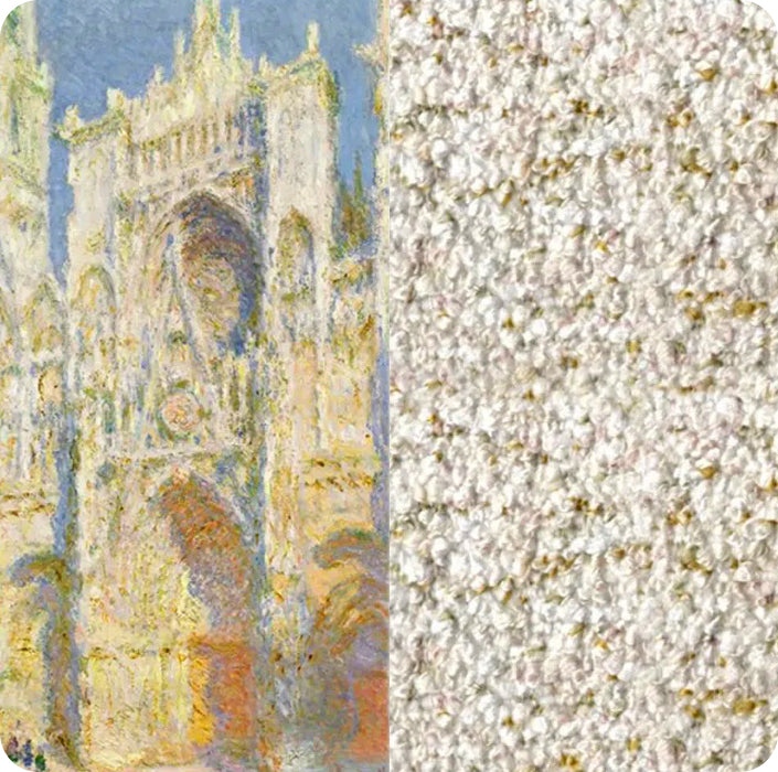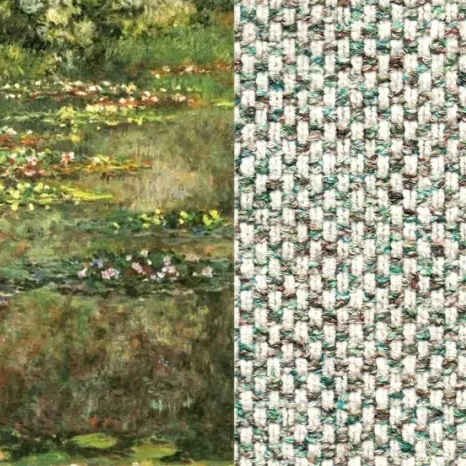 Inspired by Monet’s mastery of light and pointillist technique, we have meticulously deconstructed and reinterpreted the colour palette of each masterpiece. Through advanced spray-dyeing technology, we’ve translated his brushwork into textile form—capturing the subtlety and vibrancy of impressionist art in every thread. This innovation marks the birth of Cottonfy’s Monet-inspired fabric collection, where fine art meets fine weaving.