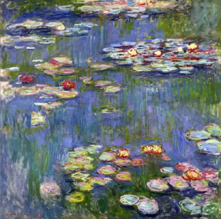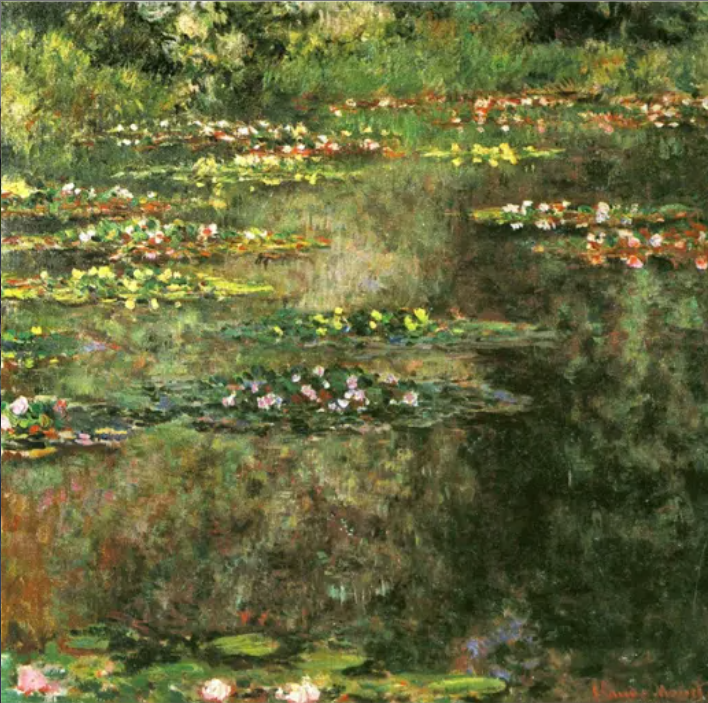 Tonal layers of soft dye recreate the dreamlike hues of Monet’s palette.