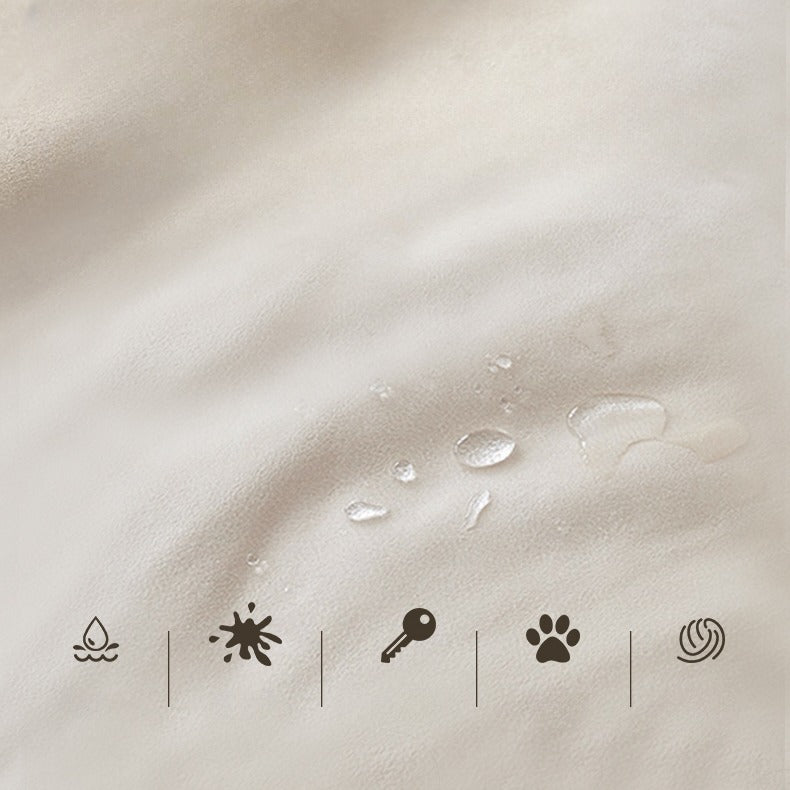 A: Yes, the fabric is water-resistant, stain-resistant, and scratch-resistant, but the covers are not removable. You can easily clean it by wiping with a damp cloth and using a vacuum for regular maintenance.