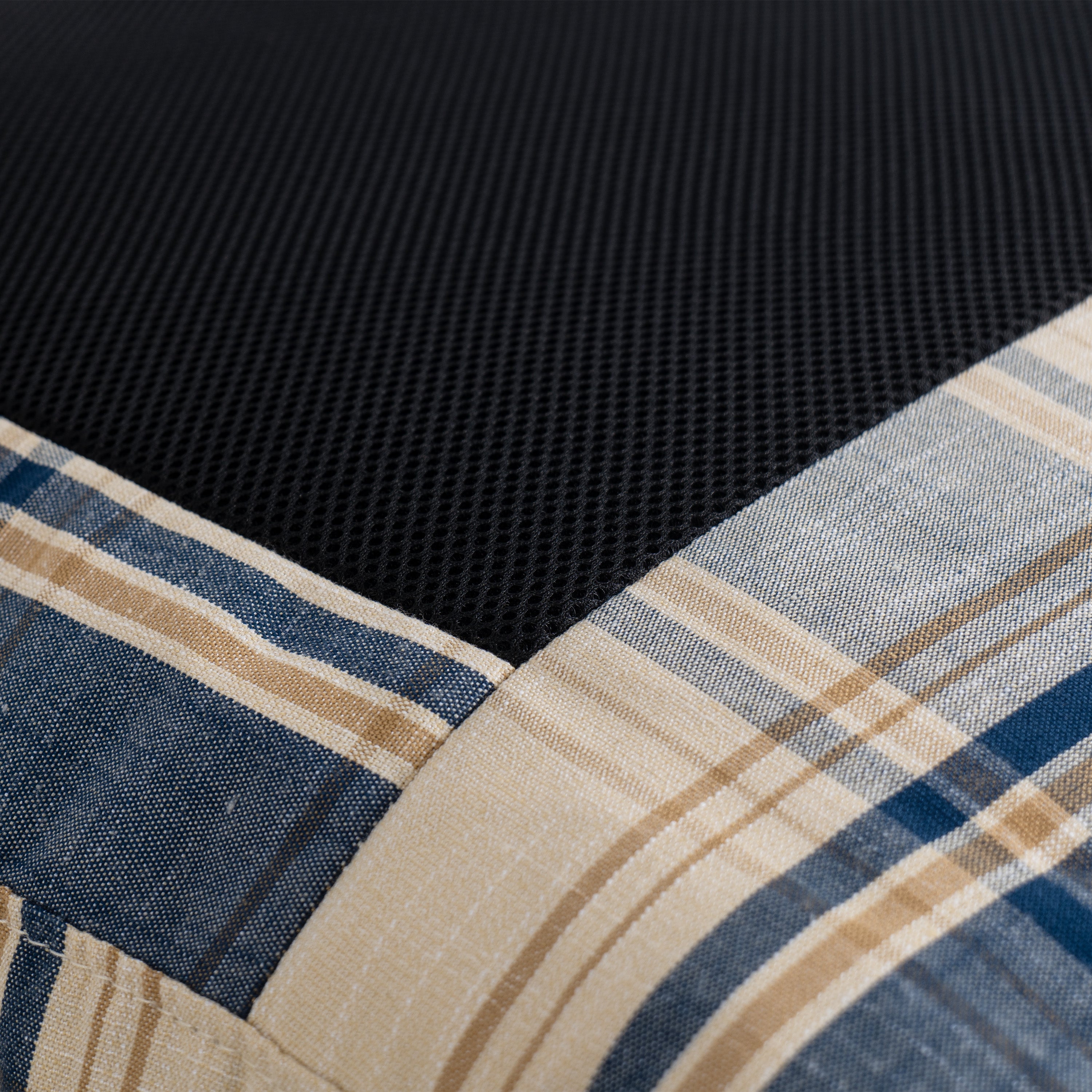 - Exclusive Cottonfy Fabric: Custom-designed checkered and striped upholstery exclusive to the brand.