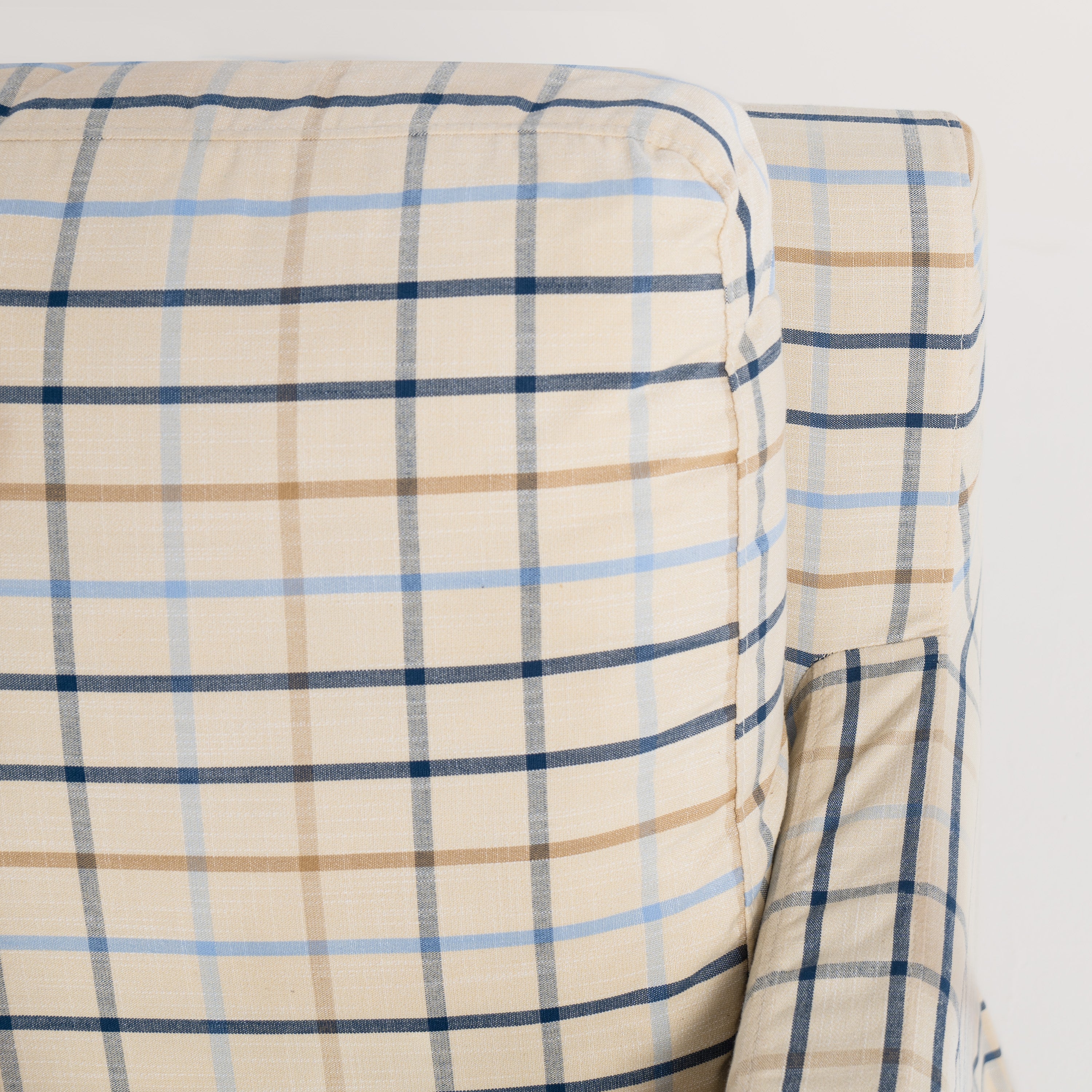 Unlike most patterned sofas, this design seamlessly blends stripes and checks for a layered look, enhanced by a cottage-style skirted frame and detachable cover system—delivering classic English charm with modern practicality.
