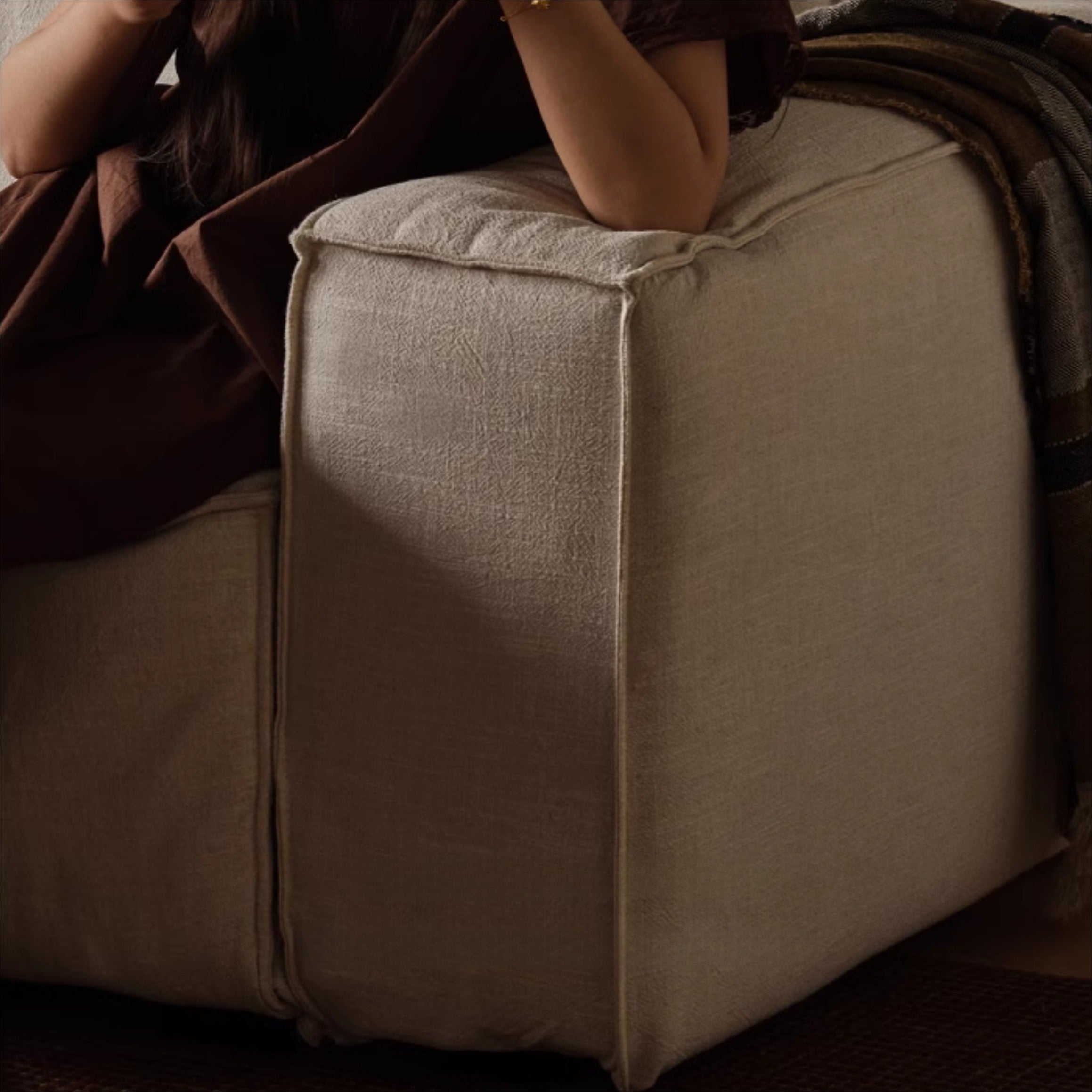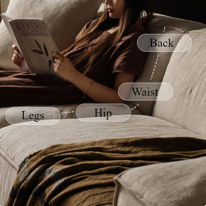 Each module of this sofa features double-stitch seam craftsmanship, paired with skin-friendly cotton-linen fabric. This combination ensures both comfort and aesthetic appeal, making it a stylish addition to any home.