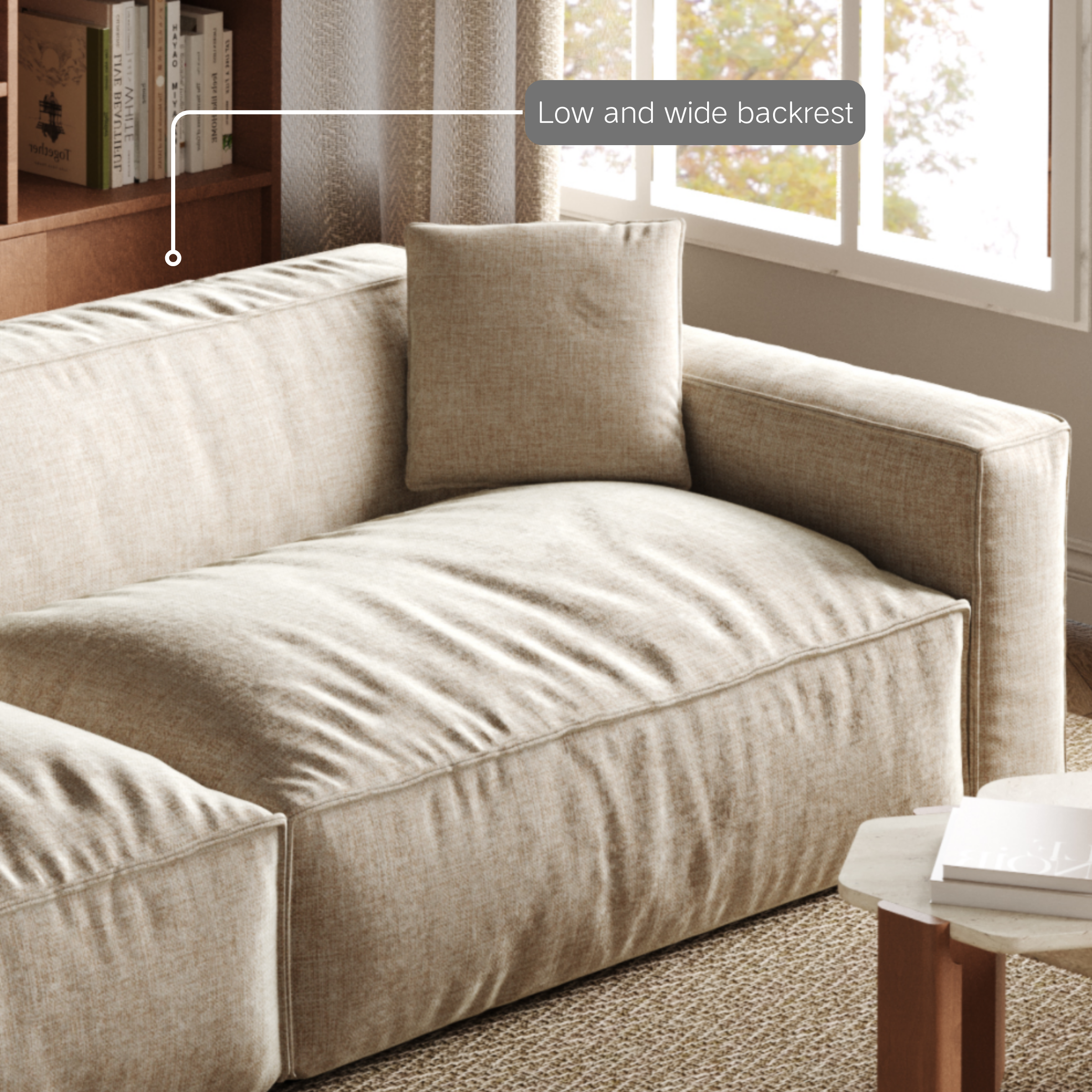 This sofa with a slightly higher cushion and a seat depth wider than the backrest offers excellent ergonomic support. This design promotes proper posture and relaxation, ensuring a comfortable seating experience.