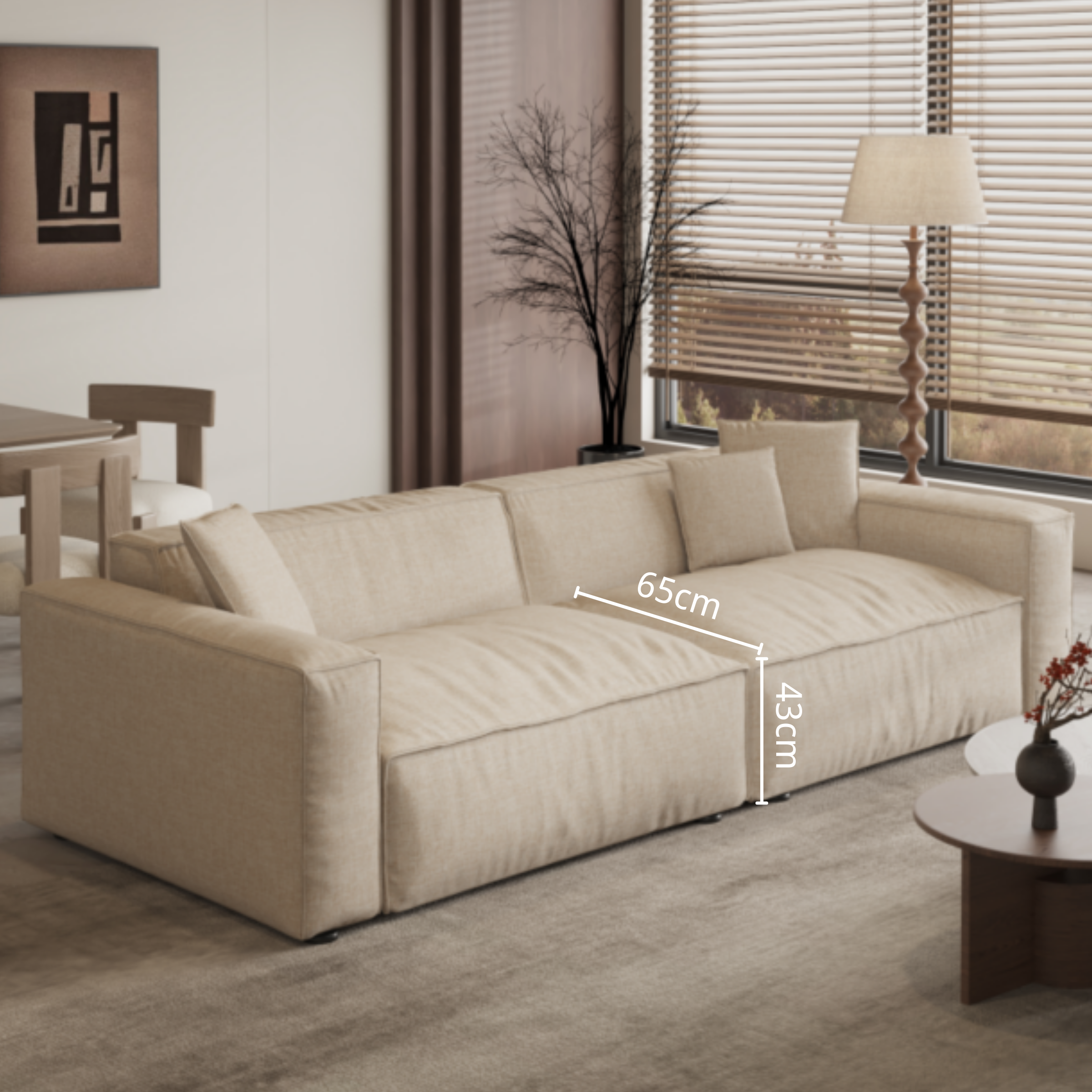 Elevate your living space with the luxurious elegance of the Cottonfy Cotton Linen Tofu Block Fabric Down Sofa. Designed with both style and comfort in mind, this sofa features premium cotton-linen fabric, offering a soft, breathable feel for ultimate relaxation. The tofu block design provides a modern touch, while the down-filled cushions deliver unmatched comfort, perfect for lounging or entertaining guests. Handcrafted with care, each sofa is a unique piece, reflecting expert craftsmanship and attention to detail. With its timeless appeal and versatile design, this sofa seamlessly complements any home decor, creating a warm, inviting atmosphere.