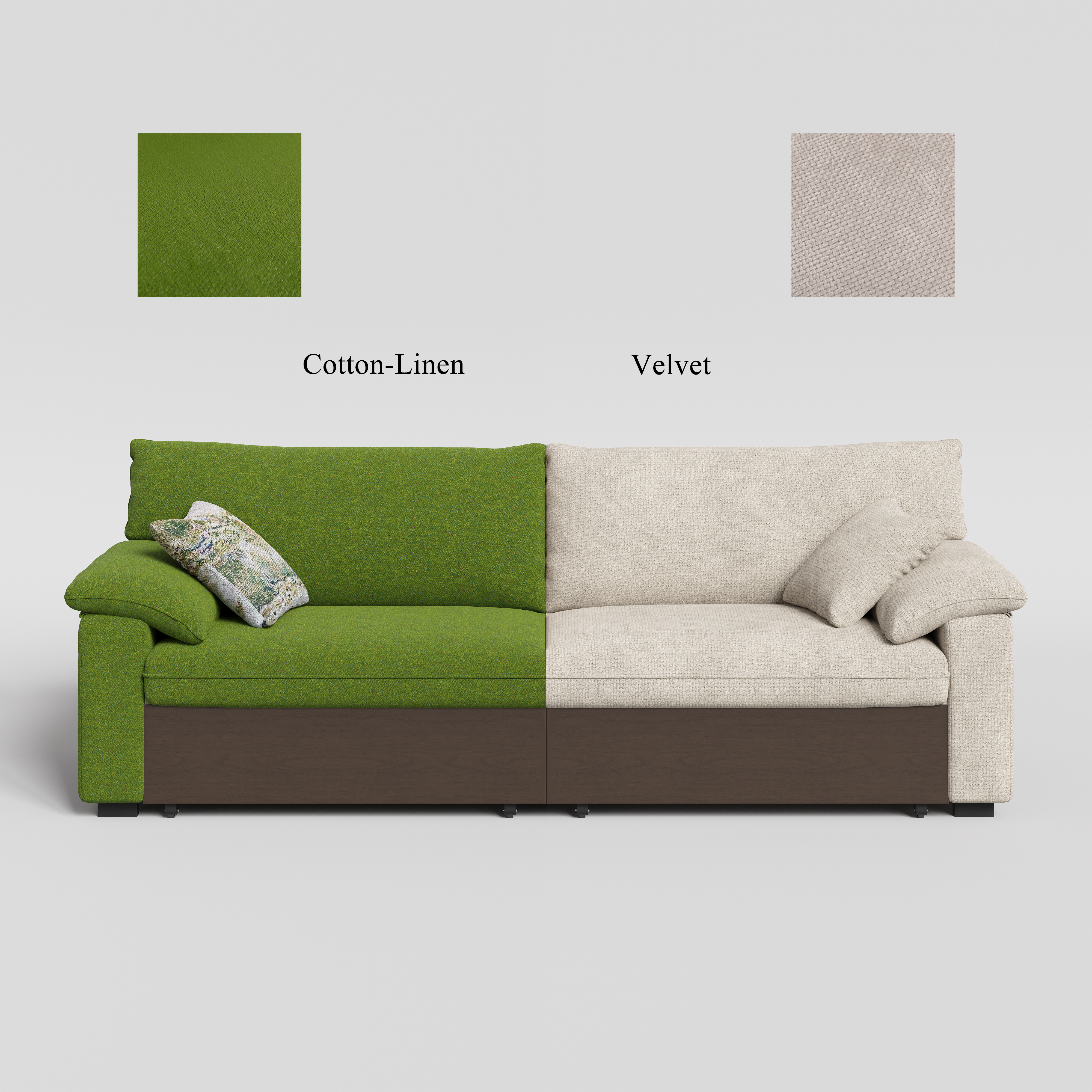 Our sofa beds are available in two stylish options: green cotton-linen and white flannel. Both offer a sleek, solid color design that complements any home decor. The green cotton-linen provides a natural, earthy feel, while the white flannel offers a soft, luxurious touch.
