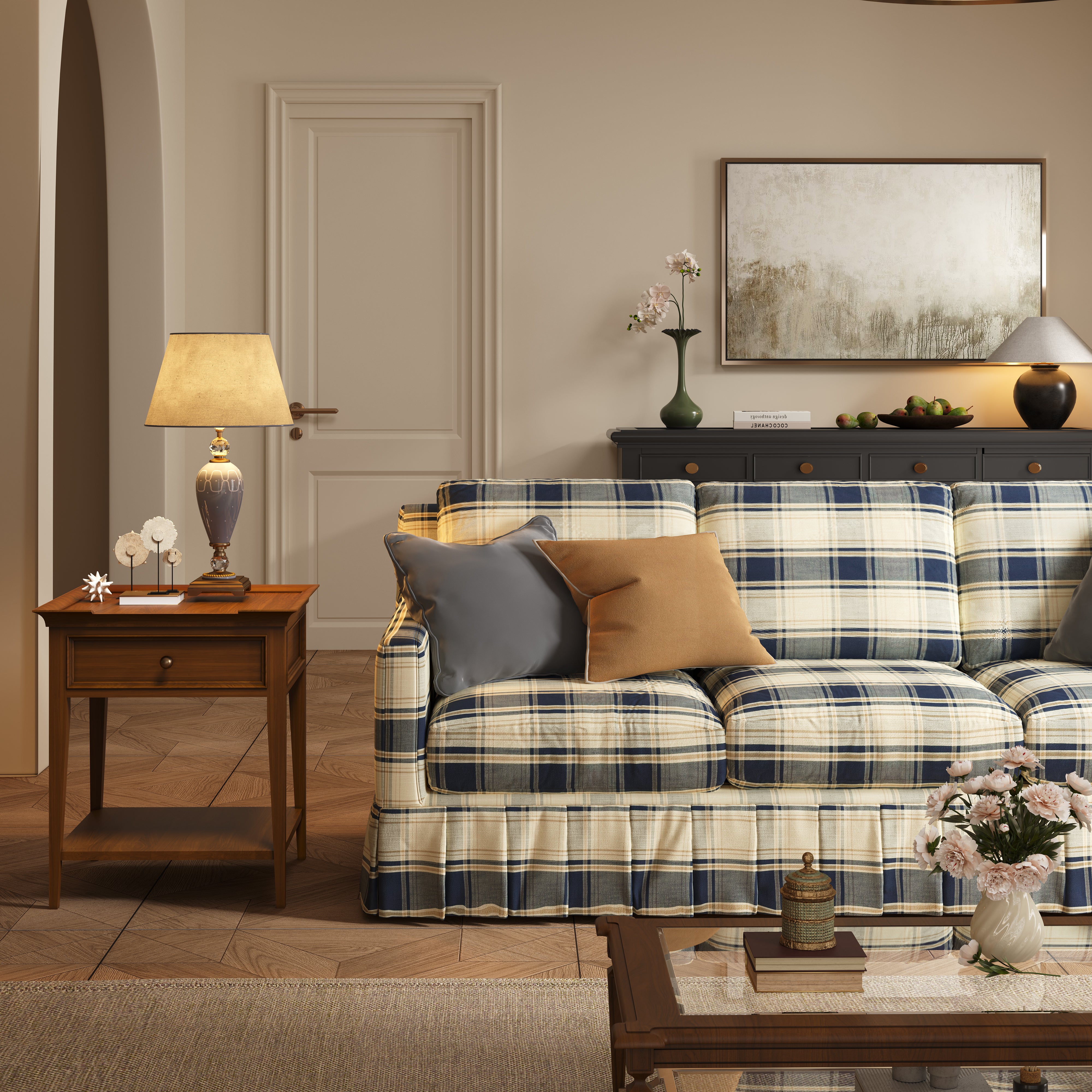 The skirt design is a highlight, adding agility and elegance like a delicate garment, instantly enhancing your living room's style and vibe. For colour matching, we chose classic plaid and pinstripe patterns. These timeless elements, popular in fashion, blend well with various home styles.