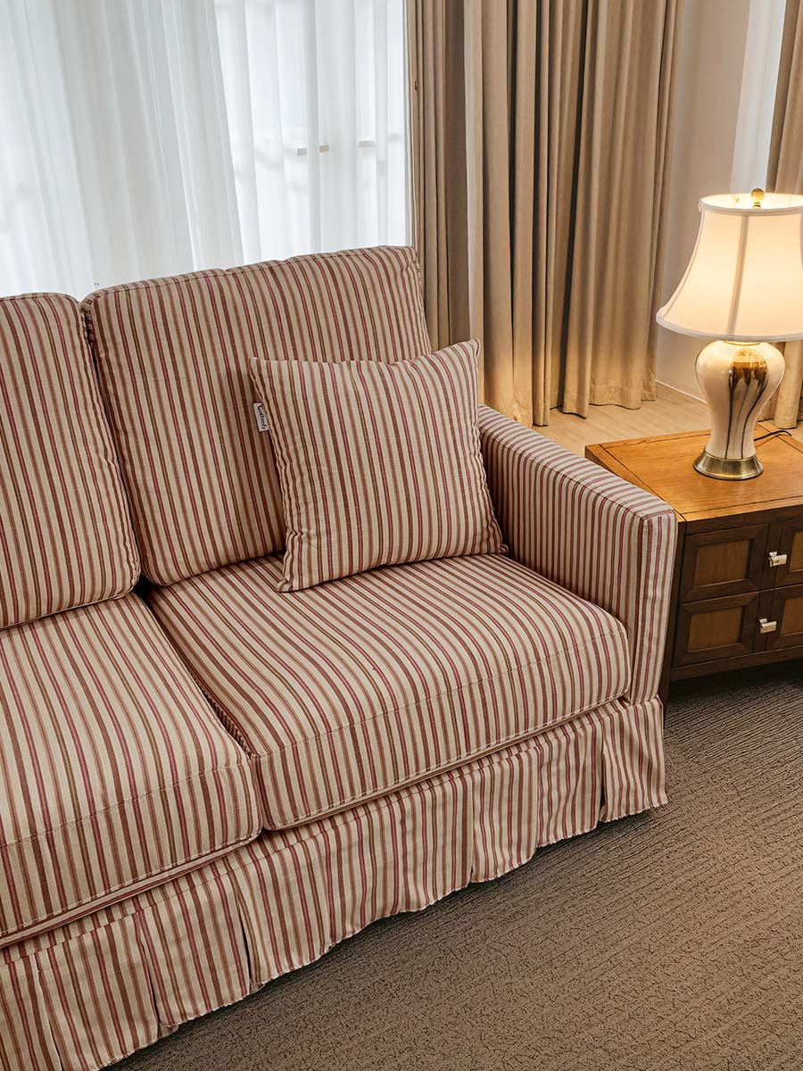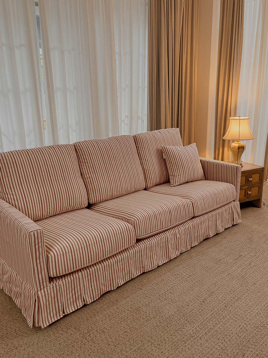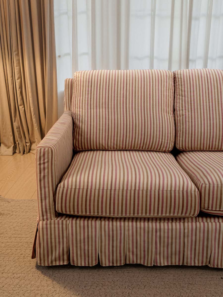 Looking for a high-quality three-seater sofa in the UK? Our classic striped sofa with removable covers combines timeless design with everyday comfort. Featuring a chic skirted base, plaid and pinstripe patterns, and a spacious seating area, this sofa is perfect for modern and traditional living rooms alike. Ideal for family gatherings, social occasions, and cosy evenings, it brings elegance, durability, and style to any home.